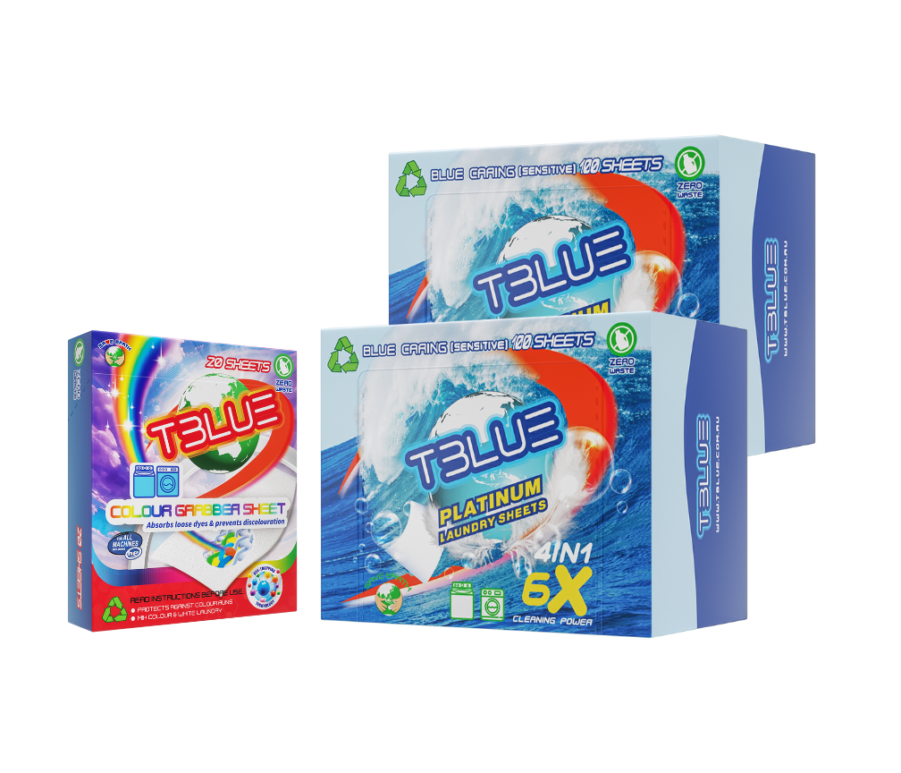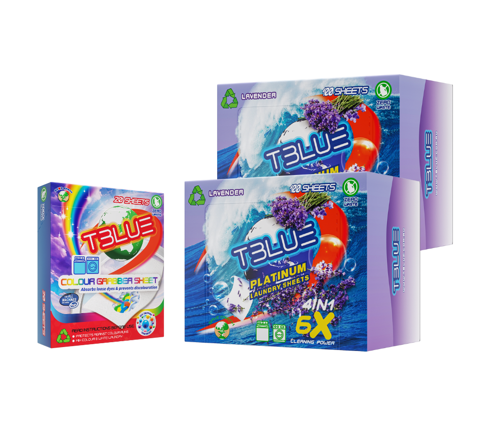 Master your laundry routine with the TBLUE Ultimate Family Bundle. We’ve combined our largest capacity detergent packs with our smart fabric protection technology to create the absolute best value for your home.